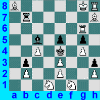 Det här är ett mycket annorlunda schackproblem! Karl Faber som är en tysk specialist på schackproblem har konstruerat det. Hitta ett drag för vit som INTE omedelbart resulterar i schackmatt för svart! (Vit sida på nederkanten!) Om du kan fler eller vill diskutera lösningen så skicka mail! |